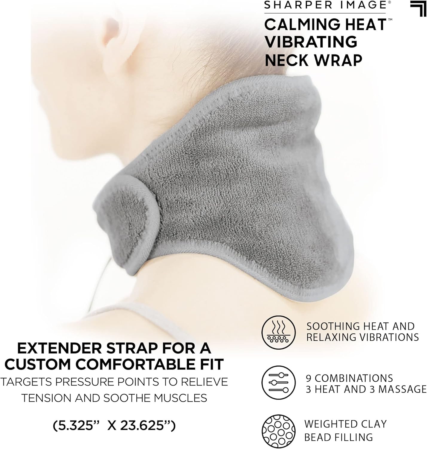Calming Heat Neck Wrap by Sharper Image Personal Electric Neck Heating Pad with Vibrations, 3 Heat & 3 Vibration Settings- 9 Relaxing Combinations